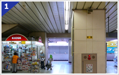 中浦和駅改札を出て左手にKIOSKがありますのでKIOSKの方に進んで突き当りを左に曲がります。