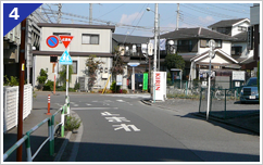 突き当たりを右に曲がると2軒目に4階建てのビルが見えます。こちらの2階が弊社です。