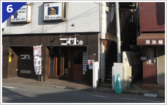 1Fがラーメン屋「つむじ」さんの建物です。2Fに上がる階段を上ってください。